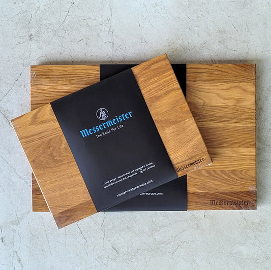 recycled materials and FSC-certified sustainably harvested wood take center stage. Prepare to embark on a culinary journey like no other with our exquisite collection of knives. Within the Future Series, we present the pinnacle of versatility and precision: the Santoku Chef's Knife, the Bread Knife, the gracefully curved Tourne Knife, and the versatile Paring Knife. Each knife is meticulously crafted with the utmost care and attention to detail, ensuring a seamless blend of functionality and sustainability. But our commitment to a greener future doesn't stop there. We proudly offer sustainable cutting boards made from locally sourced oak within the series. These cutting boards not only provide a sturdy and reliable surface for all your slicing and dicing needs, but they also embody our dedication to preserving the environment. The Messermeister Future Series is a testament to our unwavering belief that sustainability and exceptional quality go hand in hand. By incorporating recycled materials and responsibly sourced wood, we strive to reduce our ecological footprint while offering you knives that surpass all expectations. Elevate your culinary experience and join us on this sustainable journey. With the Messermeister Future Series, you not only invest in a set of remarkable knives but also contribute to a brighter, more environmentally conscious future. Experience the harmony of craftsmanship and sustainability in every slice and chop, and savor the difference that conscious choices make in the kitchen. Unlock a world of culinary possibilities with the Messermeister Future Series—a collection that celebrates sustainability, innovation, and the art of masterful cooking.