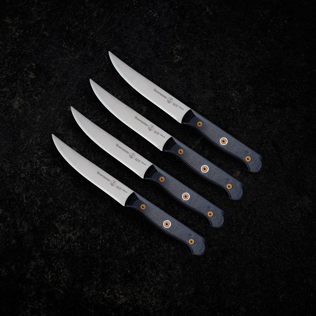 - Il coltello da steak Custom da 5" di Messermeister ha un bordo fine per rifinire e tagliare la carne senza strappi. Questo design snello e compatto è elegantemente stilizzato per abbinarsi perfettamente a qualsiasi impostazione della tavola.